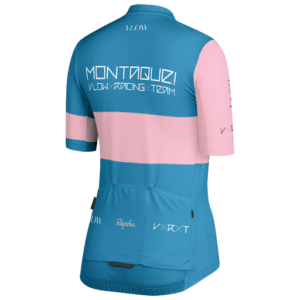 Dieses Trikot basiert auf demselben Modell, das auch die Grundlage für die Herrentrikots des Racing Teams bildet. Auf dem quer über die Brust laufenden Streifen prangt der Ausruf „MONTAQUE!“, der für den Ehrgeiz und die Leidenschaft im Radsport steht.